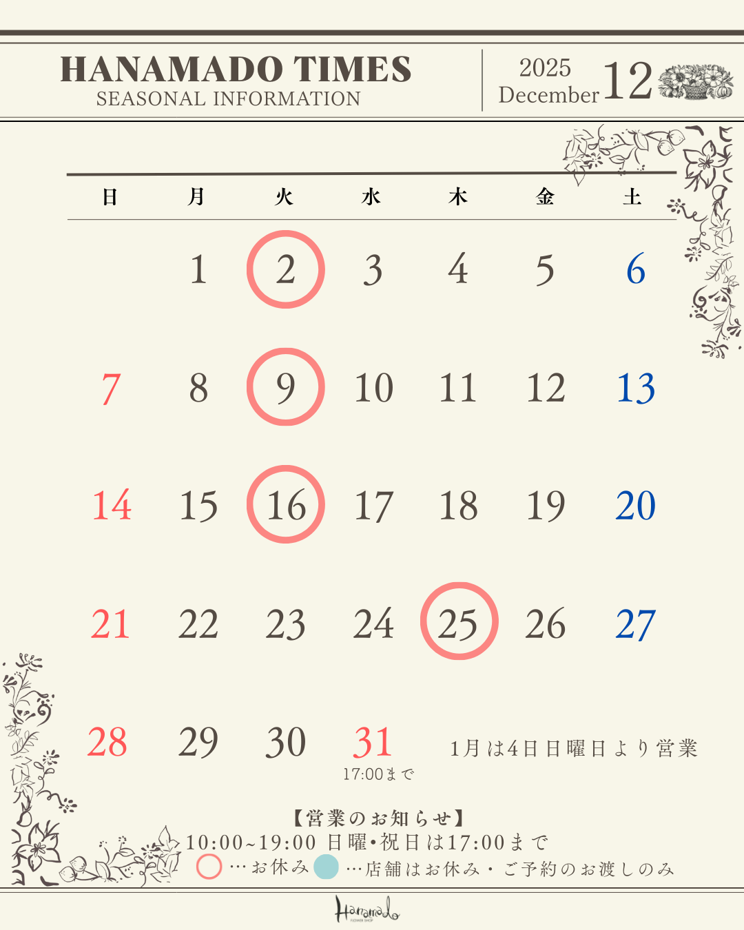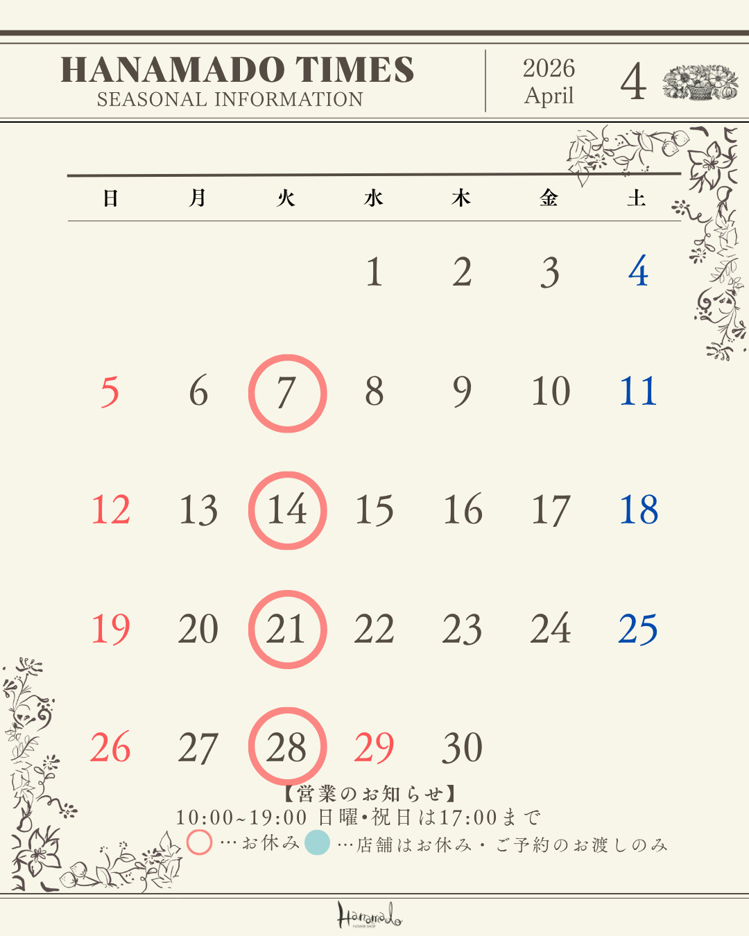 E-mail. info@hanamado.jp